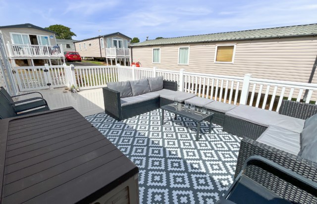 3-bedroom 8 berth 12 x 36ft ABI Horizon. Key features: Large side veranda with patio furniture, 2 x toilets, 2 double bedrooms + twin room, Wi-Fi, undercounter fridge with freezer box, electric fire in the lounge, allocated parking next to property, maximum 8 guests.